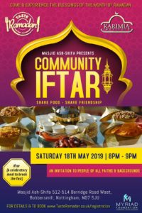 Taste Ramadan at Bobbersmill Masjid, invites people of all faiths to attend a grand Iftar dinner inshaAllah.