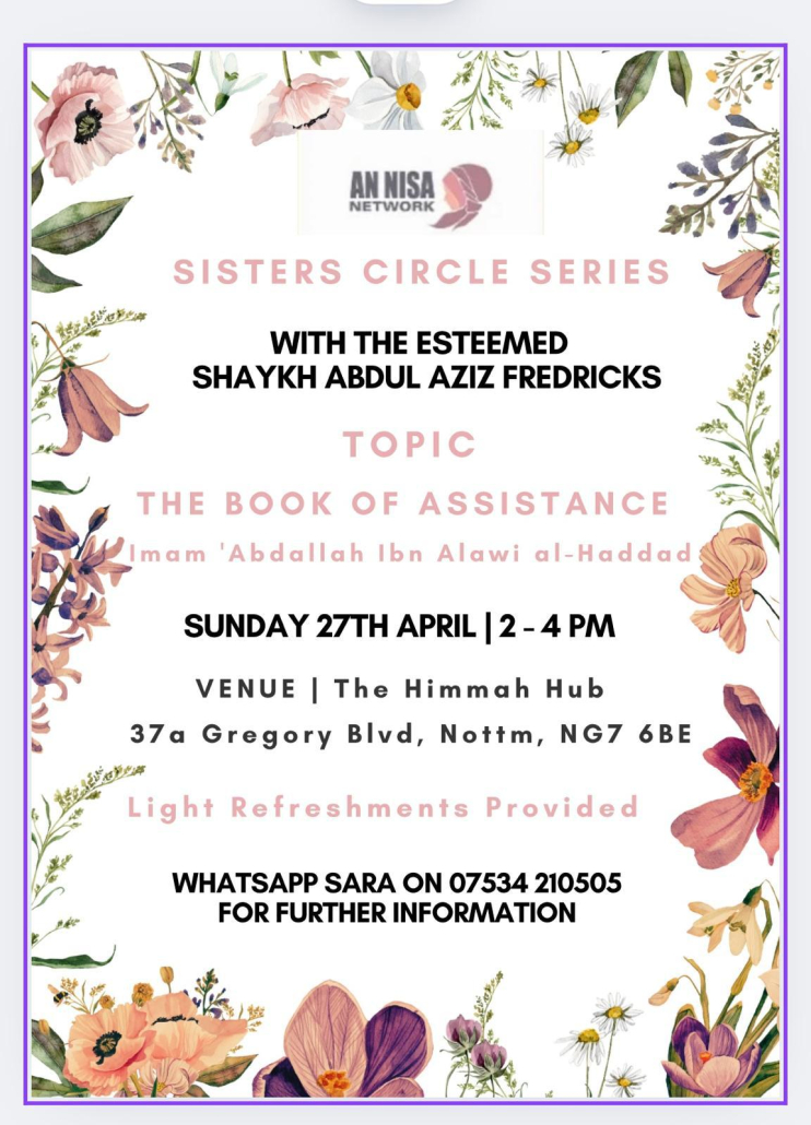 We are pleased that Shaykh Abdul Aziz will be covering The Book Of Assistance in the next few sisters circle series.